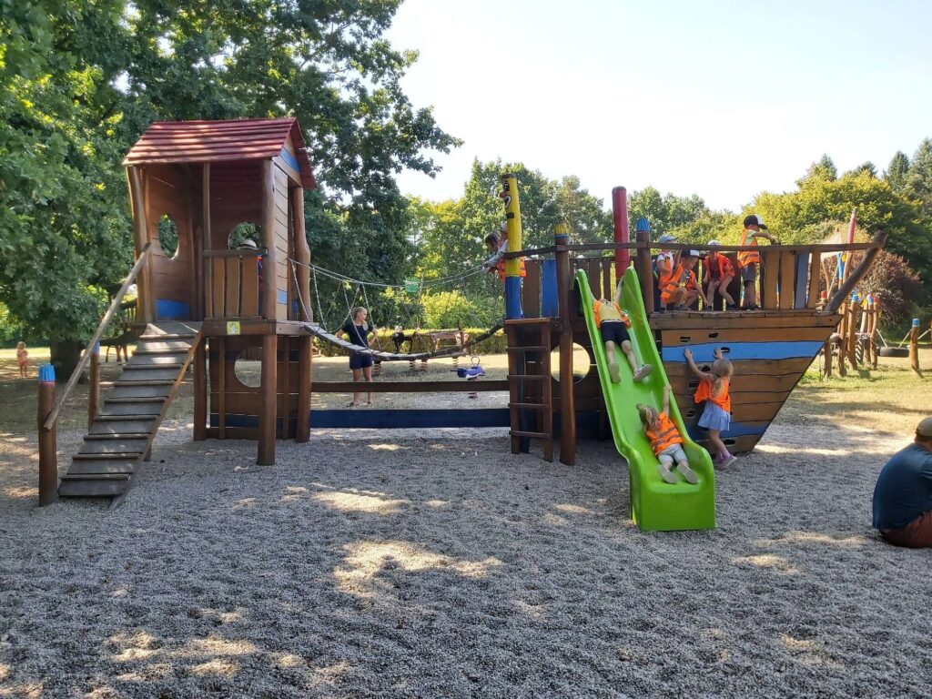 ⚓🏴☠️ Pirátství volá! – celé léto jsme završili velkým pirátským dobrodružstvím. Děti se staly posádkou pirátské lodi, hledaly zakopaný poklad a užívaly si hry plné fantazie.